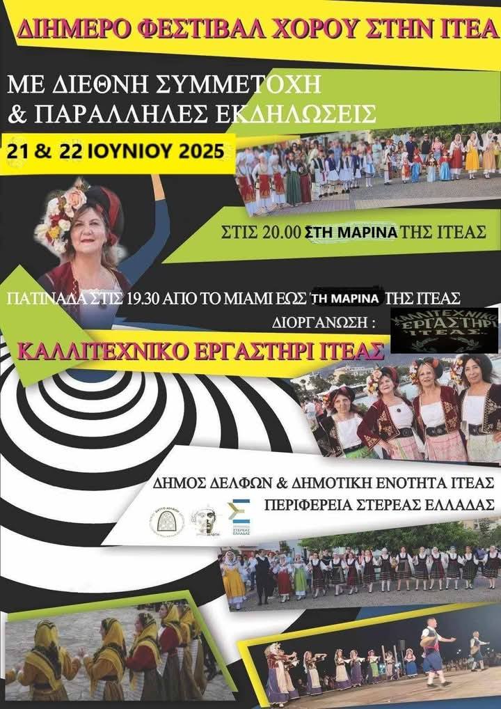 Η Ιτέα φιλοξενεί το 15ο Φεστιβάλ Χορού, από την Παρασκευή 20 έως την Κυριακή 22 Ιουνίου 2025, υποδεχόμενη χορευτικά από όλη την Ελλάδα… και όχι μόνο, καθώς για φέτος υπάρχει αφιέρωμα στο Αργεντίνικο tango.