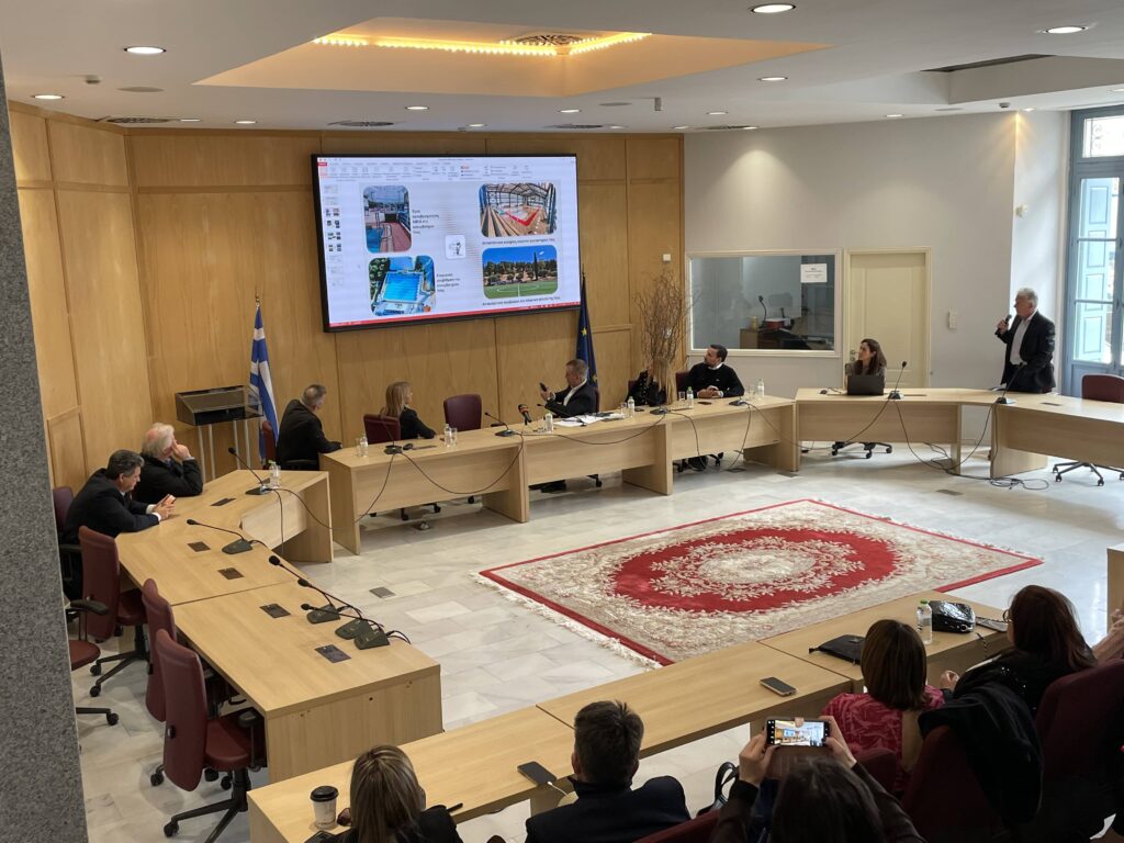 Ακολούθως, στο πλαίσιο της επίσκεψης πραγματοποιήθηκε συζήτηση στην αίθουσα του Δημοτικού Συμβουλίου με αθλητικούς συλλόγους-φορείς της περιοχής, όπου ο Υπουργός παρουσίασε τις μεταρρυθμίσεις στις οποίες έχει προβεί το Υπουργείου Αθλητισμού, κάνοντας λόγο για τομές που αλλάζουν άρδην το χώρο του αθλητισμού. Ως κορυφαία εστίασε στο e-kouros, τo Ηλεκτρονικό Μητρώο Αθλητικών Σωματείων με Ειδική Αθλητική Αναγνώριση, το οποίο αποτελεί πλέον ένα σημαντικό εργαλείο στα χέρια όλων, μέσω του οποίου αποτυπώνεται η ακριβής εικόνα των σωματείων και των αθλητών σε ολόκληρη τη χώρα. Ο κ. Βρούτσης έθεσε ως στόχο τη συνεχή αύξηση των αθλητών, καθώς και τη βελτίωση των υποδομών, παράγοντες από τους οποίους περνά η ανάπτυξη του Αθλητισμού, έχοντας στη συνέχεια την ευκαιρία να ακούσει από κοντά τα ζητήματα που έθεσαν οι εκπρόσωποι των αθλητικών συλλόγων της περιοχής.