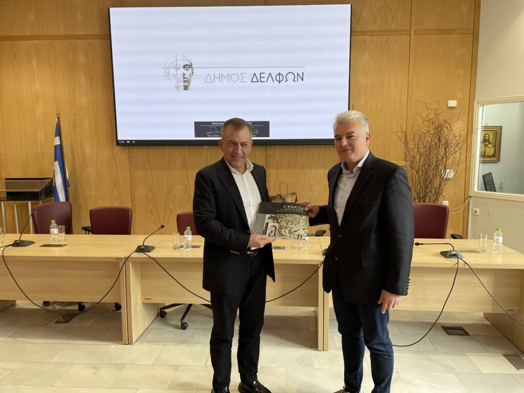 Τον κ. Βρούτση, ο οποίος συνοδευόταν από την Ασημένια Ολυμπιονίκη κ. Κατερίνα Θάνου, την Olympian και ρεκορντγούμαν στον Μαραθώνιο κ. Μαρία Πολύζου και το Συντονιστή Γενικό Διευθυντή του Ο.Α.Κ.Α. κ. Κωνσταντίνο Χαλιορή, υποδέχθηκε αρχικά στο Δημαρχείο της Άμφισσας ο Δήμαρχος Δ. Δελφών κ. Παναγιώτης Ταγκαλής, παρουσία του Αντιπεριφερειάρχη Π.Ε. Φωκίδας κ. Γεώργιου Δελμούζου και των Αντιδημάρχων κ.κ. Νικόλαου Λουπάκου και Αστερινού Δημητρίου.