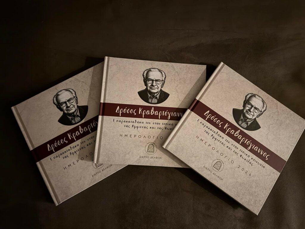 Κυκλοφόρησε το ημερολόγιο του Δήμου Δελφών για το 2026, με την εκδοτική μέριμνα του Δικτύου για τον Πολιτισμό και τον Τουρισμό στη Φωκίδα «Δίκτυο Δελφών», αφιερωμένο φέτος στον σπουδαίο Δρόσο Κραβαρτόγιαννο, το έργο του οποίου και το αποτύπωμά του χρέος όλων είναι να μείνει ανεξίτηλο στο χρόνο.